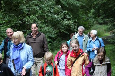 Besonders die Kleinen unter den Teilnehmern verfolgten die Distanzangaben auf dem GPS-Gerät mit großer Spannung. Auf der Tour die auf leicht verschlungenen Pfaden zur Deister Alm führte waren einige Schätze zu finden. Zwei davon hatten Mitglieder des Vereins erst kurz vorher ausgelegt und auf der Internetseite veröffentlicht. Passenderweise trugen diese Caches die Namen "Partnerstadt Mont-Saint-Aignan" und "Partnerstadt Wurzen". In der Beschreibung der Caches ist dementsprechend einiges über die Partnerstadt und Partnerschaft zu erfahren.