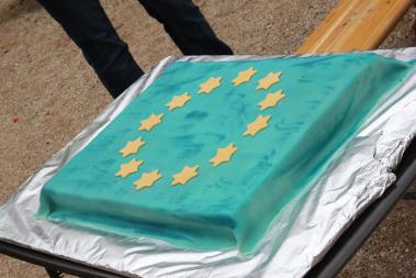 Zusätzlich hat die CDU die große Europatorte kostenfrei an alle Besucher verteilt.
