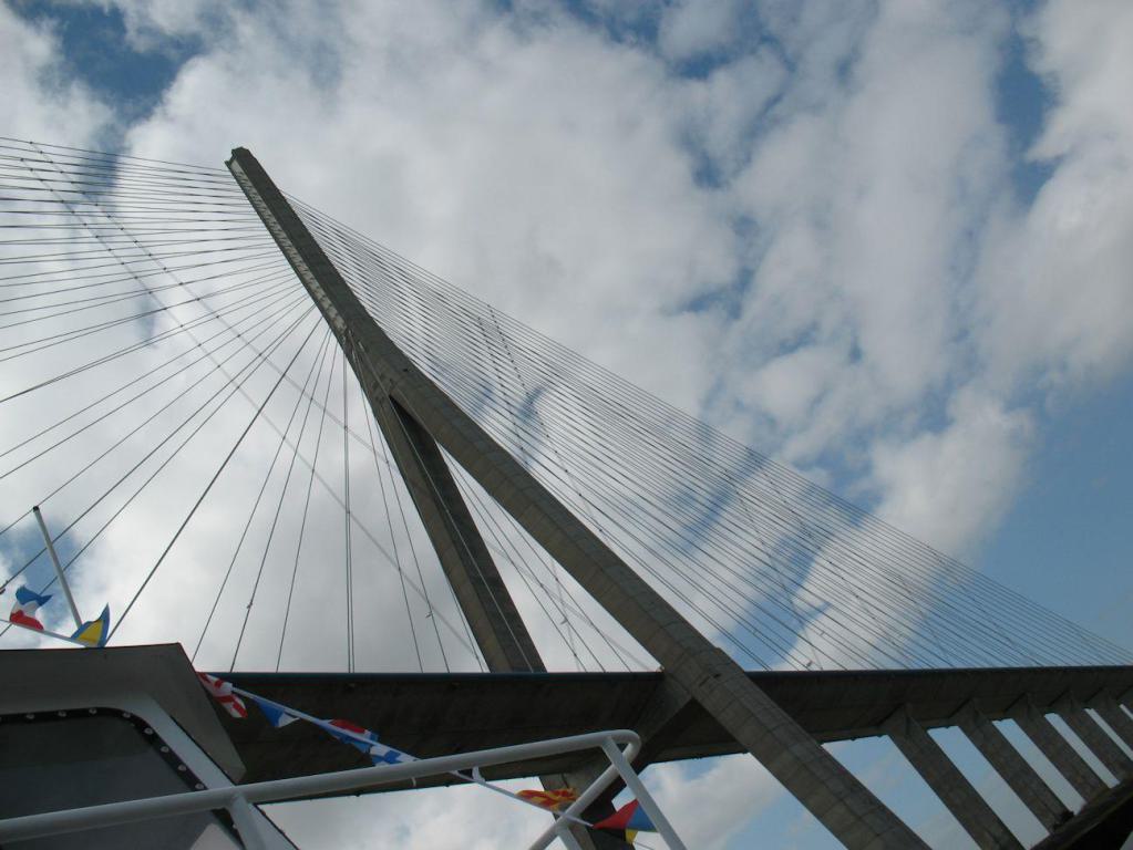 Bei der Bootsfahrt am Nachmittag befuhren die Mitreisenden bei strahlendem Sonnenschein die Seine-Mündung und besichtigten Le Pont de Normandie - die Schrägseilbrücke mit der größten Spannweite in Europa.