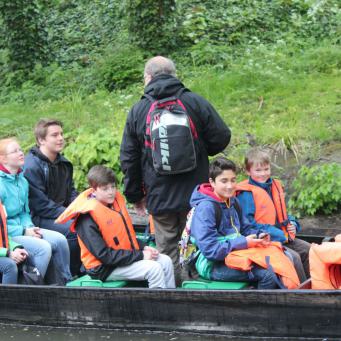 Am Freitag trafen wir uns schon früh morgens wieder am Bus, um gemeinsam mit unseren Gastgebern einen Tagesausflug nach Amiens zu unternehmen. Die Stadt, etwa hundert Kilometer von MSA entfernt, bietet mit ihren Wassergärten, den „Hortillonnages“ und der beeindruckenden Kathedrale ein besonderes Ausflugsziel. Der Wettergott war glücklicherweise auf unserer Seite, als er pünktlich mit der Ankunft in Amiens die heftigen Regenschauer enden ließ, die uns auf der Autobahn noch die Aussicht auf eine Bootstour durch die Wassergärten vermiest haben. So konnten wir trocken die etwa einstündige Bootsfahrt durch die Gärten erleben.