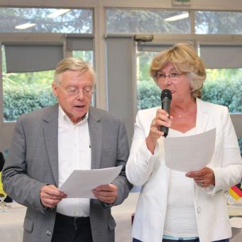 Am Abend trafen sich alle Gäste und Gastgeber wieder, um gemeinsam im Gemeindezentrum den schon traditionellen Abschlussabend unserer Treffen zu feiern. Eingeleitet wurde der Abend von Mme. Flavigny, der Oberbürgermeisterin von Mont-Saint-Aignan, die auch seit vielen Jahren in der Partnerschaft mit Barsinghausen engagiert ist.