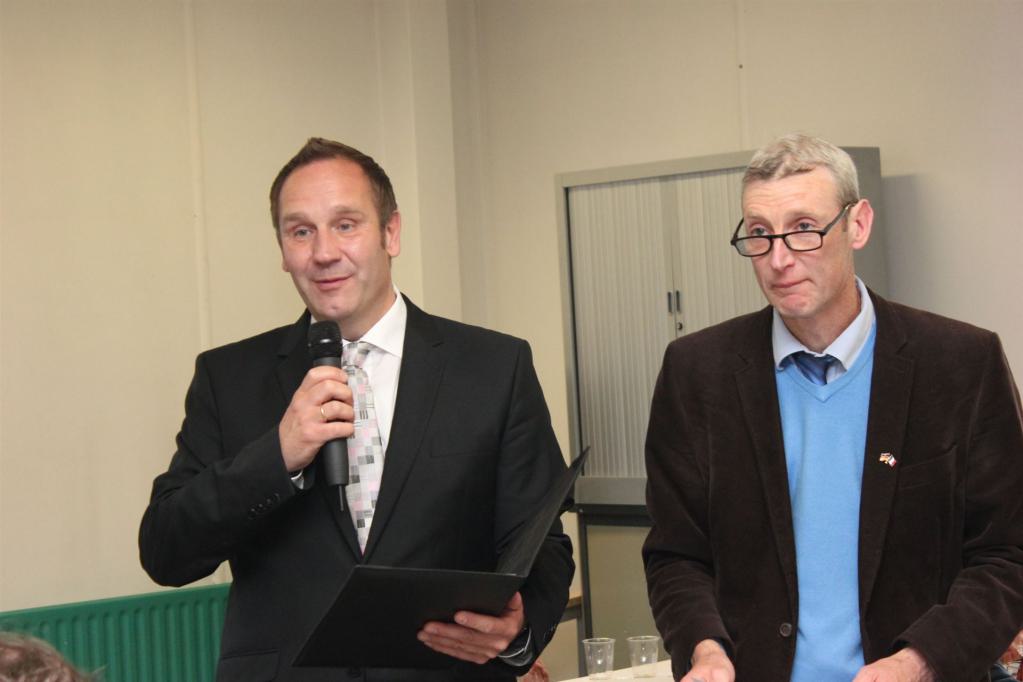 Obgleich es ein Abend der Begegnung zwischen deutschen Gästen und französischen Gastgebern ist, war es doch auch ein Abschiedsabend. Nicht nur, dass der Abend immer auch das Ende des Treffens bedeutet, in diesem Jahr hat sich auf französischer Seite auch Christian Haller verabschiedet, der sein Amt Ende 2015 aufgibt, da ihn seine Tätigkeiten in eine andere Region führen. Acht Jahre lang hat er auf französischer Seite diese Treffen organisiert und begleitet. Für sein Engagement dankten ihm alle Anwesenden mit einem besonderen Beifall.