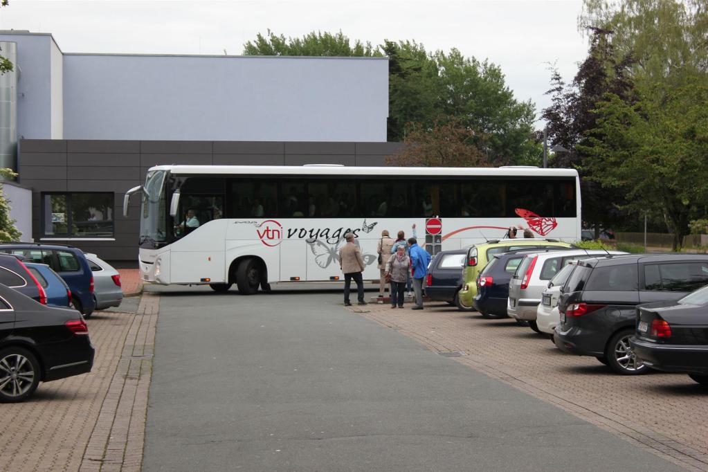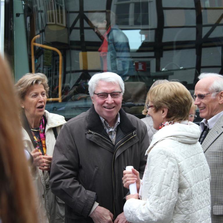 Donnerstagabend um kurz nach 18:00 Uhr kam der Bus aus Mont-Saint-Aignan am Rathaus an, wo auch bereits alle Gastgeber gemeinsam mit den Gästen aus Brzeg Dolny auf die Ankunft der Besucher warteten. Natürlich gab es dann endlich ein großes Hallo als die ersten Gäste den Bus verließen. Langjährige Freundschaften die sich regelmäßig (mindestens) zu Himmelfahrt treffen wie auch neue Kontakte zwischen Teilnehmerinnen und Teilnehmern die das erste Mal Gäste aufnahmen oder in Barsinghausen zu Besuch waren, fanden sich auch dieses Jahr wieder unter den Teilnehmern.