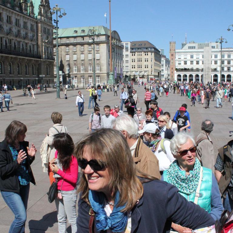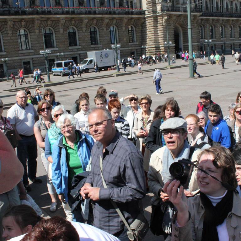Am Freitag stand eine Exkursion nach Hamburg auf dem Programm. Mit zwei Bussen ist die Gruppe fast pünktlich morgens nach Hamburg aufgebrochen, um dann vor dem Rathaus der Hansestadt einen Stadtrundgang mit Führung zu beginnen.