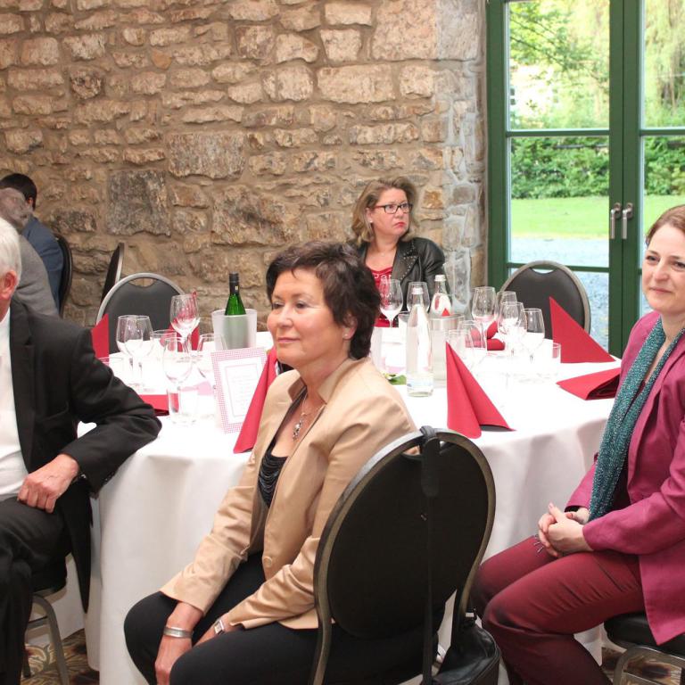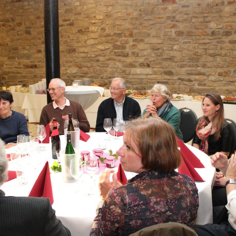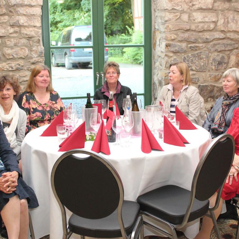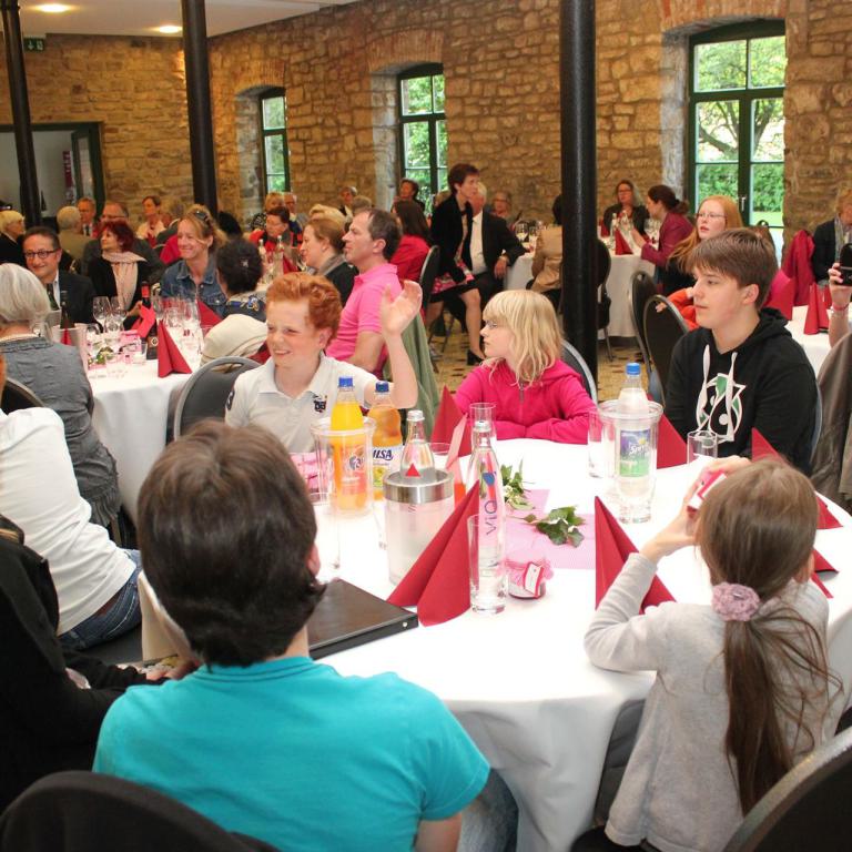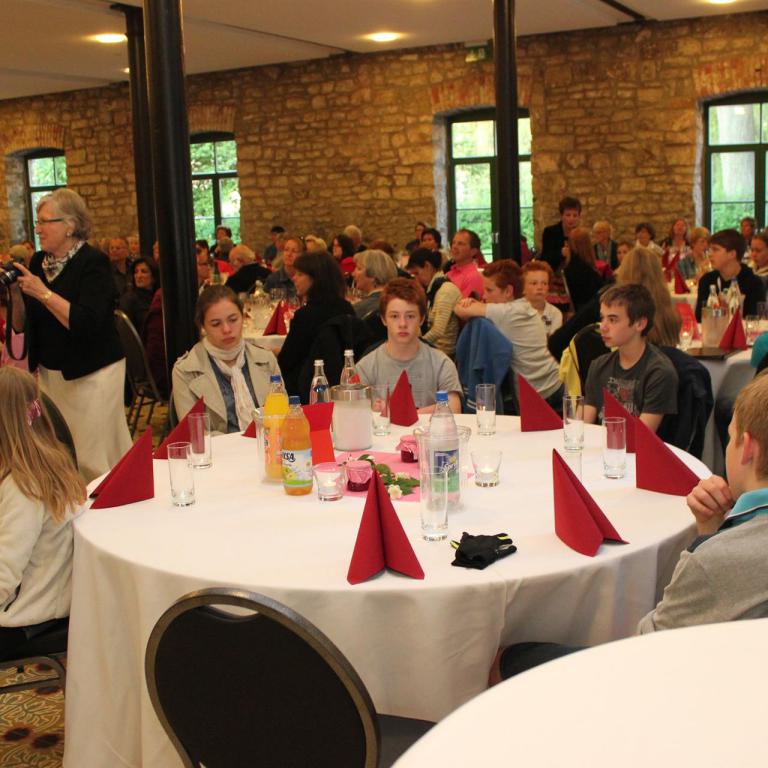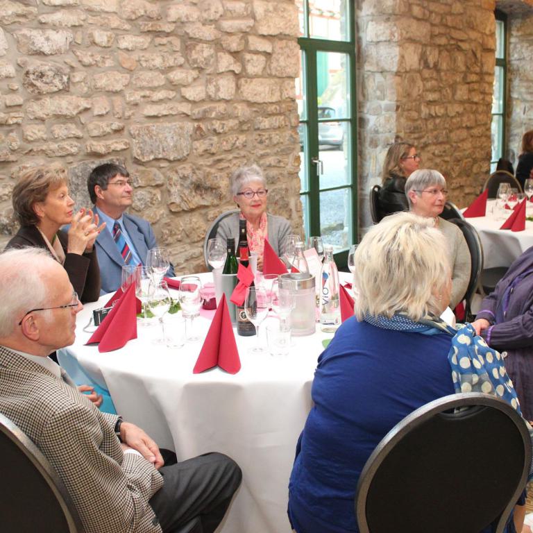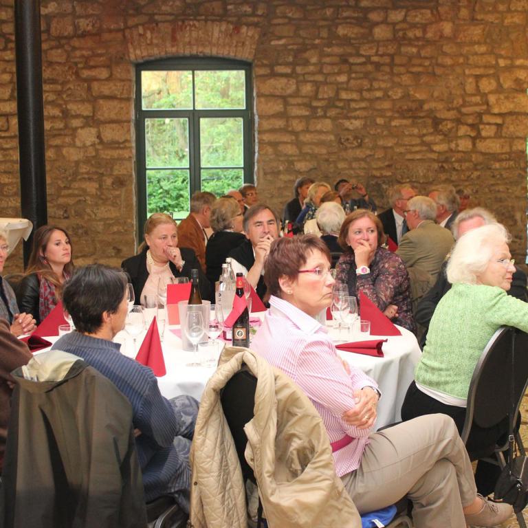 Nach der Rückfahrt blieb dann noch etwas Zeit in den Familien, bevor abends die große Abschlussveranstaltung im Rittergut Wichtringhausen begann. In der festlich geschmückten "Kornkammer" des Gutes waren Tische geschmückt und das Buffet vorbereitet. Mit großem Engagement hatten Vereinsmitglieder über 150 Gläser Marmelade gekocht und beschriftet, die nicht nur die Platzkarten für die Gäste waren, sondern gleichsam als Souvenir dienten.