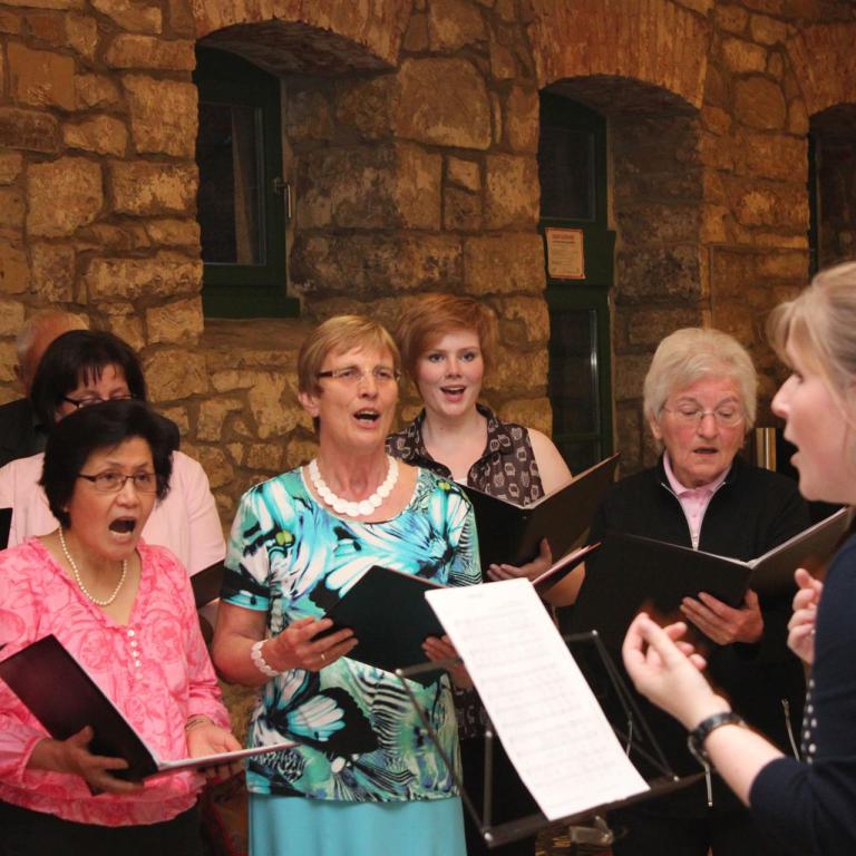 Musikalisch begleitete uns der Chor der St. Barbara Gemeinde durch den Abend und zeigte dabei ein abwechslungsreiches Repertoire von Chorälen bis zu französischen Trinkliedern. Erst nach einer Zugabe vom begeisterten Publikum eingeforderten Zugabe, konnten die Chormitglieder, die am Nachmittag bereits ein Konzert in der Kirche gegeben hatten, den Tag beenden.