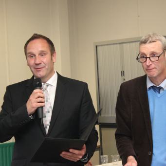 Obgleich es ein Abend der Begegnung zwischen deutschen Gästen und französischen Gastgebern ist, war es doch auch ein Abschiedsabend. Nicht nur, dass der Abend immer auch das Ende des Treffens bedeutet, in diesem Jahr hat sich auf französischer Seite auch Christian Haller verabschiedet, der sein Amt Ende 2015 aufgibt, da ihn seine Tätigkeiten in eine andere Region führen. Acht Jahre lang hat er auf französischer Seite diese Treffen organisiert und begleitet. Für sein Engagement dankten ihm alle Anwesenden mit einem besonderen Beifall.