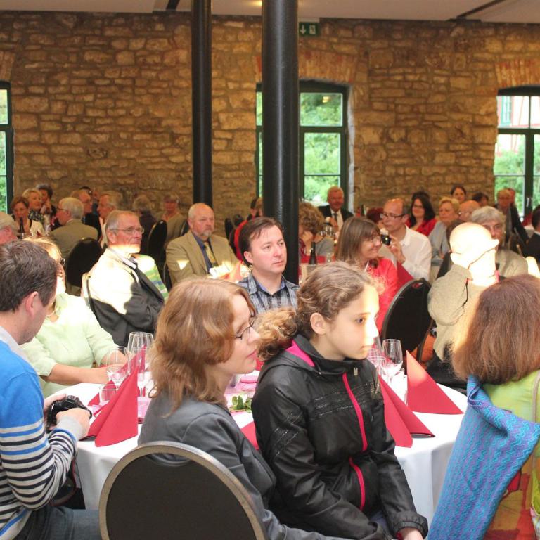 Nach der Rückfahrt blieb dann noch etwas Zeit in den Familien, bevor abends die große Abschlussveranstaltung im Rittergut Wichtringhausen begann. In der festlich geschmückten "Kornkammer" des Gutes waren Tische geschmückt und das Buffet vorbereitet. Mit großem Engagement hatten Vereinsmitglieder über 150 Gläser Marmelade gekocht und beschriftet, die nicht nur die Platzkarten für die Gäste waren, sondern gleichsam als Souvenir dienten.