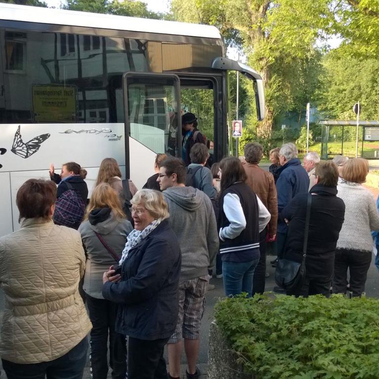 Donnerstagabend um kurz nach 18:00 Uhr kam der Bus aus Mont-Saint-Aignan am Rathaus an, wo auch bereits alle Gastgeber gemeinsam mit den Gästen aus Brzeg Dolny auf die Ankunft der Besucher warteten. Natürlich gab es dann endlich ein großes Hallo als die ersten Gäste den Bus verließen. Langjährige Freundschaften die sich regelmäßig (mindestens) zu Himmelfahrt treffen wie auch neue Kontakte zwischen Teilnehmerinnen und Teilnehmern die das erste Mal Gäste aufnahmen oder in Barsinghausen zu Besuch waren, fanden sich auch dieses Jahr wieder unter den Teilnehmern.